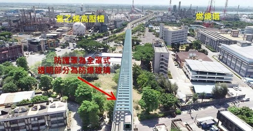 針對本案RL7站址議題,捷運局與中油公司及石油公會多次溝通討論,現行提送方案已距離中油廠區外300公尺遠,未來延伸至屏東路段,經過中油廠區及其他化工廠區,將規劃全面採用防火防爆鋼板防護罩,以隔絕噪音、熱氣、防爆、遮焰等防護功能,預防捷運設施受到周邊廠區工安事故影響,該設施已運用於臺電、化學工程生產區及捷運等實際案例。