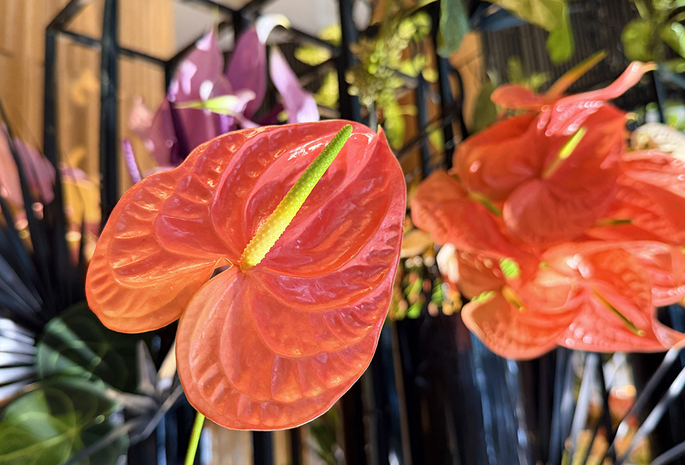 ▲台南遠東香格里拉於母親節推出「在地綻放」火鶴花藝展,選用在地栽培火鶴花,打造兼具美學與永續理念的迎賓空間。(圖/台南香格里拉提供)