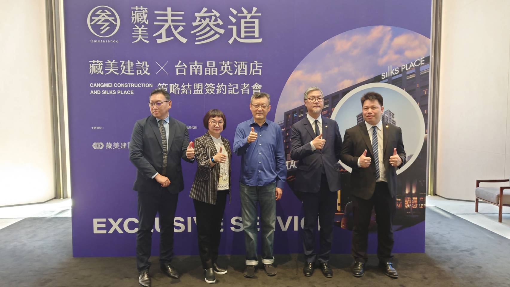 「台南晶英酒店」今日(20)與台南指標預售屋個案〔藏美表參道〕接待會館舉辦簽約記者會,正式宣佈攜手藏美建設住宅新案策略結盟。首次台南市中心「飯店生活顧問」跨界結盟,特別選定緊鄰南山台南廣場的〔藏美表參道〕為合作夥伴。台南晶英酒店深諳市中心百貨商圈發展潛力,借勢「指標百貨」與「指標個案」話題性,宣示「指標服務」的佈局眼光,創造品味指標匯聚的多贏綜效。